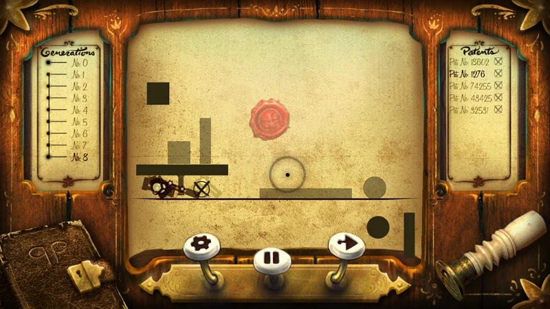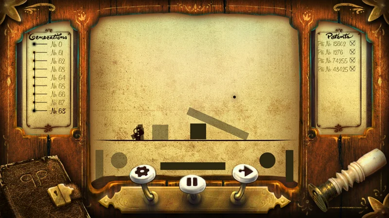 We came up with the "racing" idea together, as well as the backstory, about an eccentric inventor who created the mechanical life-giving "novelty engine" and then disappeared. This defined the turn-of-the-20th-century look for the game, but also the core gameplay idea of creating and guiding the life of ultra-simple creatures. Also, by making the creatures mechanical, you take the gruesome edge off the idea of natural selection, making it more fun to play, fail with, and explore.